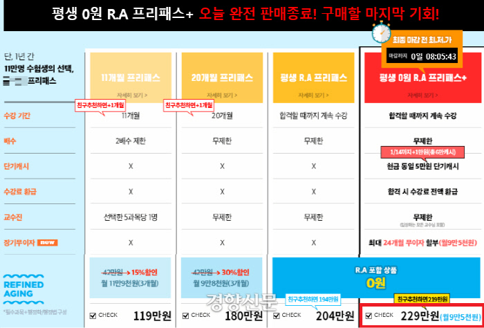¡®Æò»ý 0¿ø ÇÁ¸®ÆÐ½º¡¯ »óǰÀ» 229¸¸¿ø¿¡ ÆÇ¸ÅÇϰí ÀÖ´Â ¤¡ ÀÎÅÍ³Ý °ÀÇ »çÀÌÆ®. ȨÆäÀÌÁö °¥¹«¸®°ø¹«¿ø ½ÃÇè ÀÎÅÍ³Ý °ÀÇ ¼ö°·á°¡ ¼ö¹é¸¸¿øÀ» È£°¡Çϰí ÀÖ´Ù. ¼öÇè»ýÀ» Áß½ÉÀ¸·Î ¡°µ· ¾øÀ¸¸é °ø¹«¿ø °øºÎµµ ÇÒ ¼ö ¾ø´Ù¡±´Â ÁöÀûÀÌ ³ª¿ÀÁö¸¸ Çпø°¡¿¡¼´Â ¡°¾ÆÁ÷ ¼ö°·á¸¦ ´õ ¿Ã¸± ¼ö ÀÖ´Ù¡±´Â ¹ÝÀÀÀÌ ³ª¿Â´Ù. 7, 9±Þ °ø¹«¿ø ½ÃÇè ÀÎÅÍ³Ý °ÀÇ·Î À¯¸íÇÑ ¤¡»çÀÌÆ®´Â ¡®Æò»ý 0¿ø ÇÁ¸®ÆÐ½º¡¯¶ó´Â »óǰÀ» ÆÇ¸ÅÇϰí ÀÖ´Ù. ÇØ´ç »çÀÌÆ®¿¡¼ Á¦°øÇÏ´Â ¸ðµç °Á¸¦ 1³â°£ ¹«Á¦ÇÑ µéÀ» ¼ö ÀÖ°í ½ÃÇè¿¡ ºÒÇÕ°ÝÇÏ¸é ¼ö°±â°£ ¿¬ÀåÀÌ °¡´ÉÇÏ´Ù. ¸¸¾à ¼öÇè»ýÀÌ ¼ö°±â°£ ³»¿¡ ½ÃÇè¿¡ ÇÕ°ÝÇÏ¸é °¢Á¾ Áö¿ø±Ý ¹× Á¦¼¼°ø°ú±Ý 22%¸¦ Á¦¿ÜÇÑ ±Ý¾×µµ ȯ±ÞµÈ´Ù. º¸±â¿¡´Â ÇÕ¸®ÀûÀÎ °Í °°Àº ÀÌ Á¦µµ¸¦ µÎ°í ¼öÇè»ýµé »çÀÌ¿¡¼´Â ¡°µ· ¾øÀ¸¸é °øºÎ ¸øÇÑ´Ù¡±´Â À̾߱Ⱑ ³ª¿Â´Ù. ¡®°¡°Ý¡¯°ú ¡®¼±ÅÃÁ¦ÇÑ¡¯À̶ó´Â µÎ °¡Áö Á¦¾à ¶§¹®ÀÌ´Ù. ÇØ´ç ÇÁ¸®ÆÐ½º »óǰÀÇ °¡°ÝÀº 229¸¸¿øÀÌ´Ù. µ¿ÀÏÇÑ »óǰÀº 2017³â 6¿ù 164¸¸¿øÀ̾ú°í, Áö³ÇØ 7¿ù¿¡´Â 192¸¸¿øÀ̾ú´Ù. ÇÒÀÎ ÇýÅÃÀ¸·Î ¾à°£¾¿ °¡°Ý º¯µ¿ÀÌ ÀÖÁö¸¸ ¸Å³â ¼ö½Ê¸¸¿ø¾¿ °¡°ÝÀÌ »ó½ÂÇß´Ù. ÇÁ¸®ÆÐ½º °¡°ÝÀÌ ºñ½Î´Ù°í ´Ü°ú °ÀǸ¦ µè±âµµ ¾î·Æ´Ù. ÇØ´ç »çÀÌÆ® À¯¸í °»çÀÇ ¡®2019³â Çѱ¹»ç ±âº»+½ÉÈ¡¯ °ÀÇ °¡°ÝÀº 131¸¸3000¿øÀÌ´Ù. °ø¹«¿ø ½ÃÇè Çʼö°ú¸ñÀÎ ±¹¾î, ¿µ¾î, Çѱ¹»ç 3°ú¸ñÀÇ ±âº»+½ÉÈ °ÀǸ¸ µé¾îµµ 300¸¸¿øÀÌ ³Ñ´Â´Ù. °¡°ÝÀÌ Àú·ÅÇÑ ´ë½Å °ÀǸ¦ µÎ ¹ø ÀÌ»ó µèÁö ¸øÇÏ°Ô Á¦ÇÑÇÑ »óǰµµ ÀÖÁö¸¸ ÀÌ ¿ª½Ã 50¸¸¿øÀÌ ³Ñ´Â´Ù. »óȲÀÌ ÀÌ·¸´Ù º¸´Ï ¼öÇè»ýµé ÀÔÀå¿¡¼´Â ´Ü°ú °ÀǺ¸´Ù ÇÁ¸®ÆÐ½º¸¦ ±¸¸ÅÇÏ´Â°Ô ³´´Ù. 9±Þ °ø¹«¿ø ½ÃÇèÀ» ÁغñÇÏ´Â ±èÀºÁö¾¾´Â ¡°Àΰ »çÀÌÆ®¿¡ µé¾î°¡¸é »óȲ¿¡ ¸Â°Ô °ÀǸ¦ ±¸¸ÅÇÒ ¼ö ÀÖÀ» °Íó·³ º¸ÀÌÁö¸¸ °á±¹ ¡®ÇÁ¸®ÆÐ½º¡¯¸¦ ¼±ÅÃÇÏ´Â°Ô °¡Àå ÇÕ¸®ÀûÀÎ °ÍÀÌ µÈ´Ù¡±¸ç ¡°¸ÅÇØ °¡°ÝÀÌ ¿À¸£´Ù º¸´Ï ÀÏ´Ü ÇÁ¸®ÆÐ½º¸¦ »ç°í º¸´Â »ç¶÷µéµµ ÀÖ´Ù¡±°í ¸»Çß´Ù. ½ÇÁ¦·Î ÇØ´ç »çÀÌÆ®´Â 229¸¸¿øÀÌ ¡®2019³â ÃÖÀú°¡¡¯¶ó°í ±¤°í ÁßÀÌ´Ù.